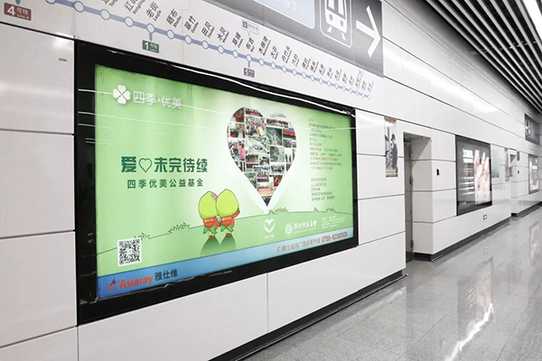 520日起,四季優美助學篇燈箱公益廣告正式亮相深圳。20處廣告投放點遍布深圳市地鐵三號線田貝、翠竹、曬布、紅嶺、華新、少年宮、福田、購物公園、石廈9個站點,地鐵四號線龍華、福田口岸、福民、市民中心4個站點,全天展示,畫面簡潔素雅,華燈璀璨時刻更顯醒目。