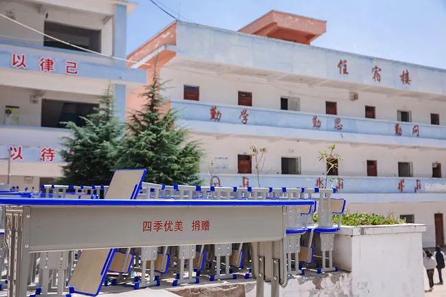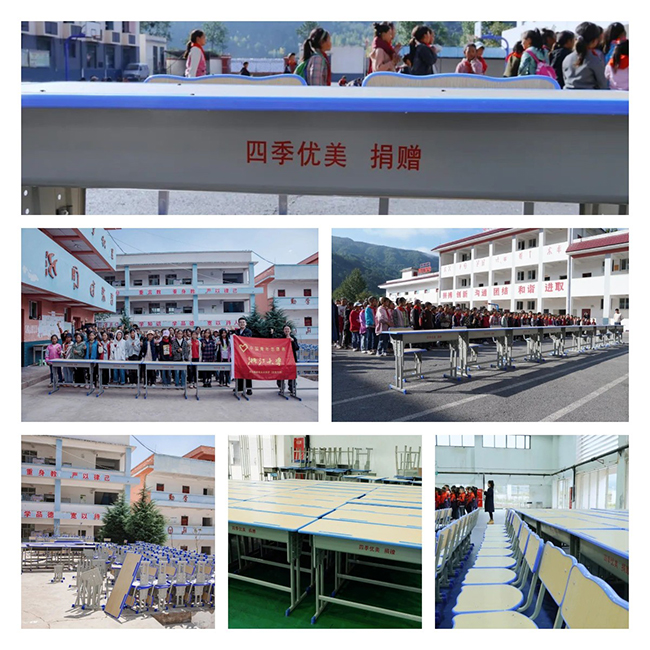 四季優(yōu)美捐贈(zèng)200套雙人標(biāo)準(zhǔn)化課桌椅到昭覺縣古里鎮(zhèn)中心校、谷曲鎮(zhèn)瓦洛烏小學(xué)、縣三小三所學(xué)校。