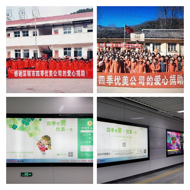 四季優(yōu)美公益基金助學(xué)廣告登陸深圳地鐵燈箱,向公眾傳播公益精神。