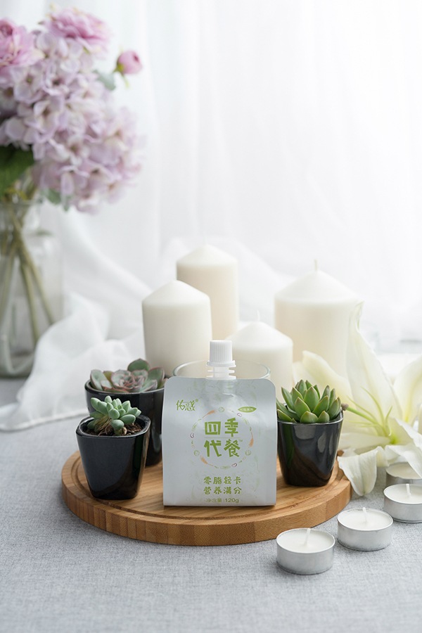 為了保證產品的營養(yǎng)均衡,四季代餐中加入了12種營養(yǎng)食材,如大麥苗粉、葛根粉、諾麗果粉、小薊粉等。在飽腹的基礎上,進一步豐富了代餐的營養(yǎng)成分,強化了對人體正常機能的養(yǎng)護作用。