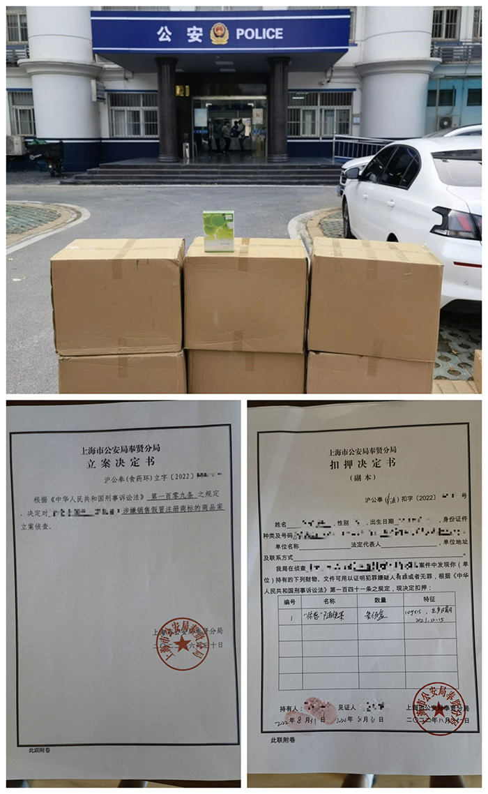 2022年8月30日,在收到稽查部的報案后,四季優美工廠在上海警方的委托下出具了相關假冒偽劣仿制品的鑒定報告,上海公安局奉賢分局迅速前往湖北省武漢市。在被告人萬某位于漢陽區鸚鵡大道的倉庫內,警方查扣假冒“隨便果”商標產品300盒,并對相關負責人采取了進一步刑事強制手段。