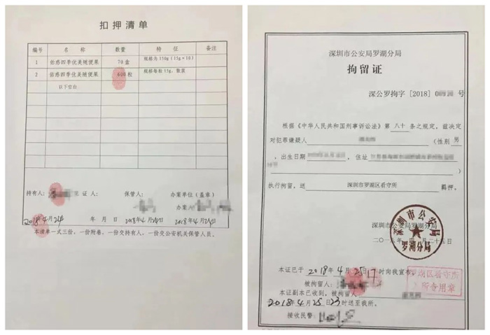 2018年4月四季優美稽查部發現某電商店鋪以低于正常價格銷售隨便果且月銷量達數萬盒。針對此異常情況,公司稽查部遂在該店鋪購買多個批次隨便果并送往工廠質檢部門鑒定,結果均為假冒偽劣產品。報案后,深圳市羅湖警方在偵查并核實情況后展開抓捕行動,該售假窩點的負責人潘某落網,該窩點當日被查封,并當場繳獲大量待發出的仿冒產品存貨。潘某于次日被羈押至看守所拘留。后被判處有期徒刑4年6個月,并依法處以罰金。